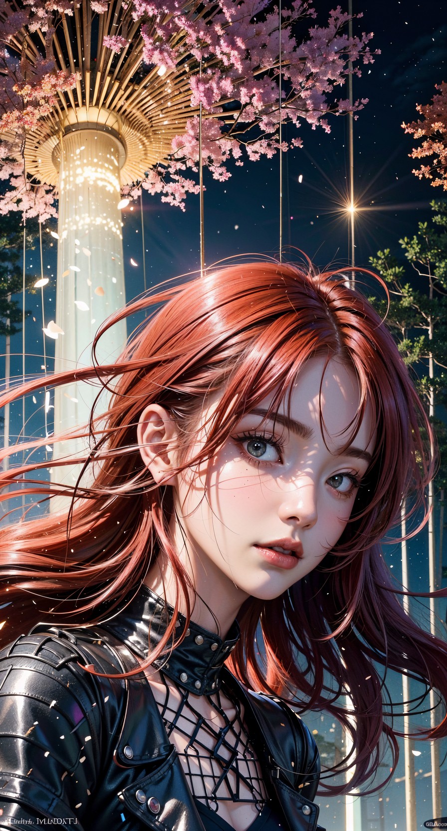 [AI_Photo] 컨셉: 레드(Red)헤어컬러와 도시의 야경을 컨셉으로 그려본 AI미녀