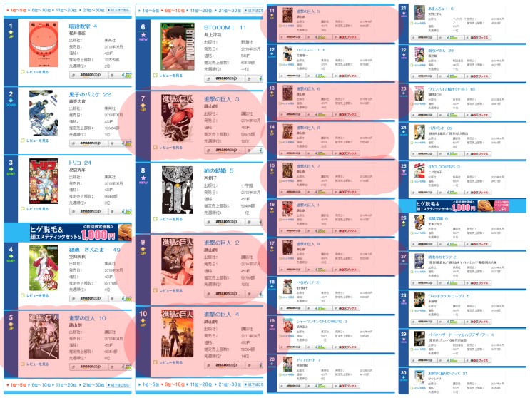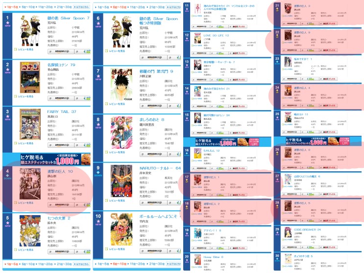 진격의 거인 10권이 발매된 4월 2째주부터 5월 4째주까지,