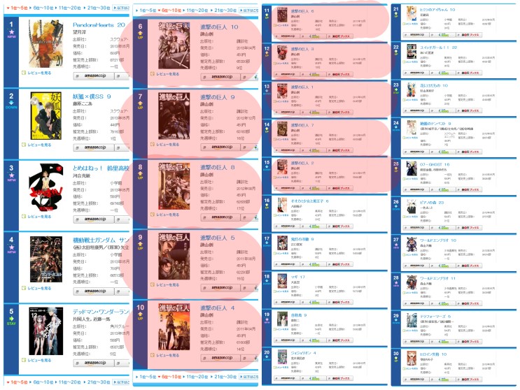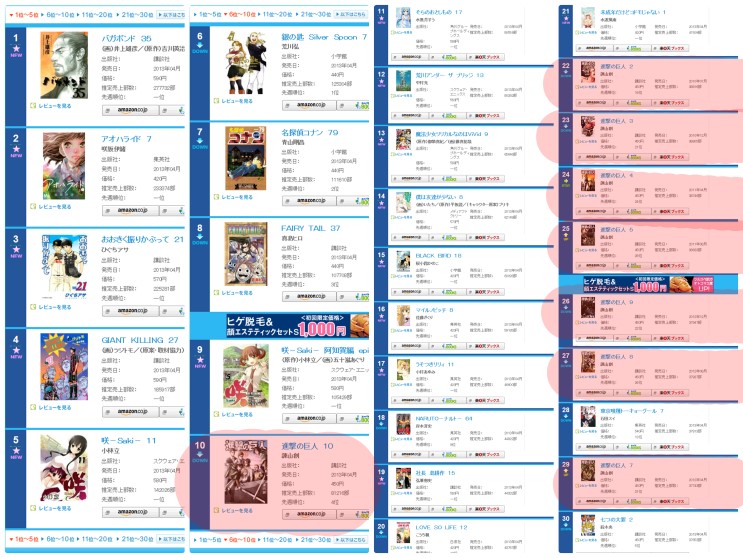 4월 3째 주 오리콘 코믹스 부문 판매순위가 공개 됩니다.