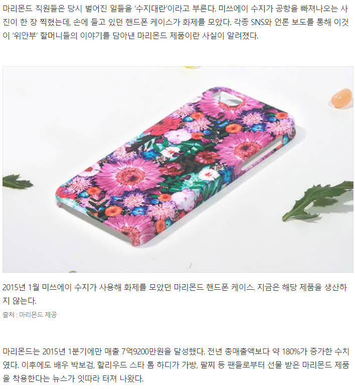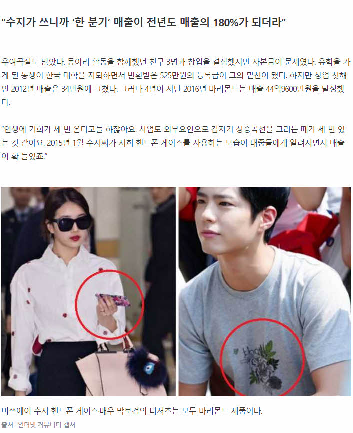 수지가 쓰는거로 화제되서 연매출 45억원을 벌었다는 회사