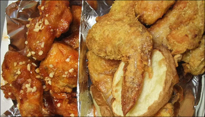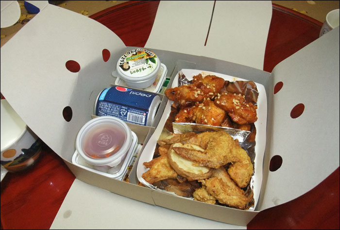 윗부분이 저렇게 들리게 해야 치킨이 눅눅해지지 않는다고 일부러 요렇게 포장하신다고 하네요~! 외관상으로도 이쁜데.. 또 그런 뜻이..ㅋ