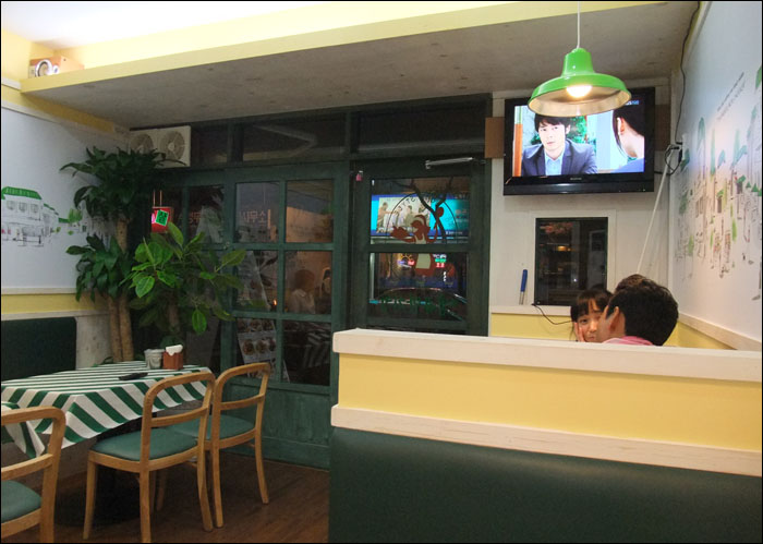 기다리시는 분들... 윗부분엔 TV도 있어서 직접 매장에서 먹으면서 볼수 있도록 되어있어요~!