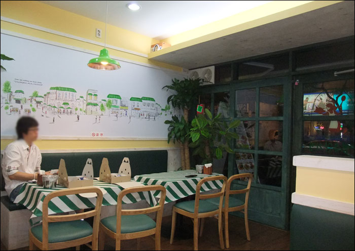 매장안 벽면 사진이예요~! 아주 깔끔한 그림으로 이루어져 있지요~