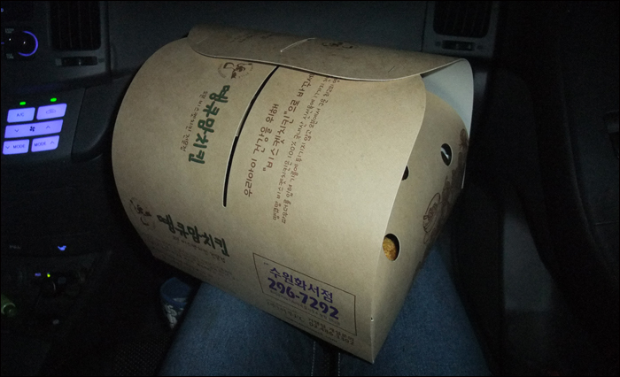 히히~! 치킨이 다 되어 인사를 하고 비가 약간 오는터라 언능 뛰어서 차에 올라탔답니다..