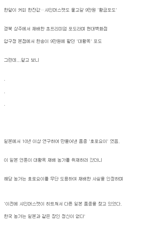 현재 일본에서 난리난 한국 포도 '대황옥'