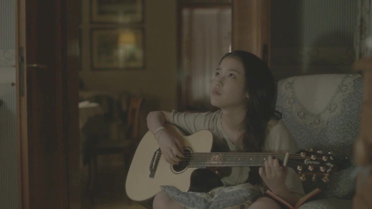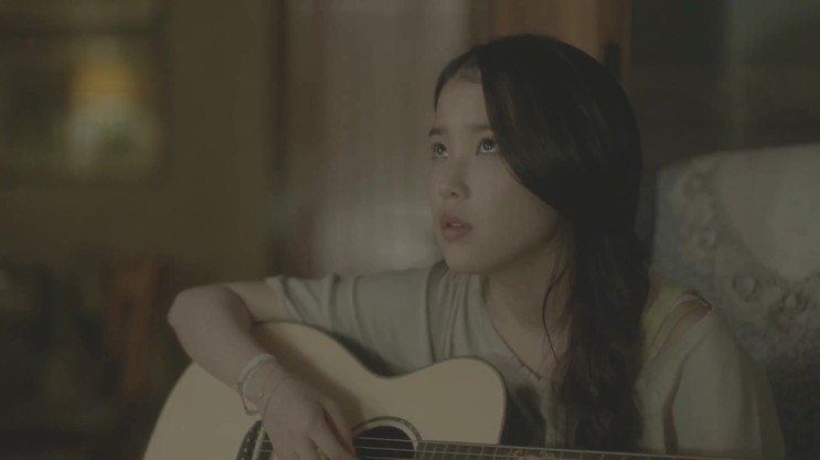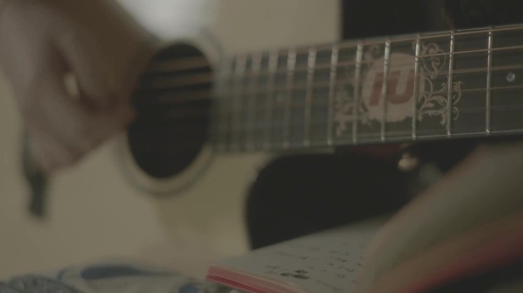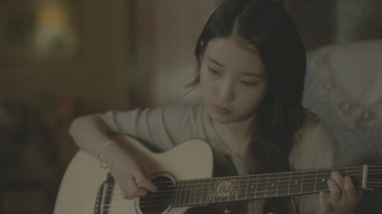 기타 치는 '아이유' 의 모습에서,