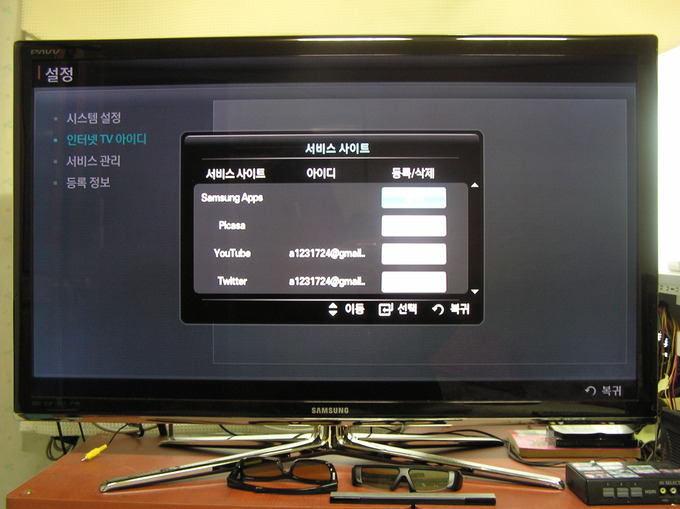멀티미디어 플레이어의 '설정' 이라고 하는 메뉴를 연상하면 그다지 특별한 것이 없을 것입니다만 'BD-C6900' 의 경우 네트워크 연결을 통한 인터넷 서비스와 어플리케이션 활용이 가능하기 때문에 다양한 설정이 필요합니다. 그중에서 가장 신기했던 것이 '로그인' 에 필요한 계정이었습니다. 현재 인터넷TV에서 제공되는 어플리케이션 서비스중 사용자 계정이 필요한 것이 몇개 있는데 그중에서 위에서 다룬 '유투브', '트위터' 뿐만 아니라 'KBS(방송사)', 'Samsung Apps', 'Picasa' 입니다. 앞으로도 많은 어플리케이션이 추가될텐데 그때마다 계정을 입력하는 것도 조금은 고역일 듯 하네요.