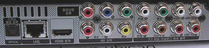 입출력은 크게 [HDMI출력], [컴포넌트, 컴포지트 AV출력], [7.1채널 아날로그, 옵티컬 음성 출력] 3개의 파트와 LAN단자로 나뉘어져 있습니다. 블루레이 플레이어이고, 블루레이3D 를 구동해야 하기 때문에 AV출력에서는 HDMI출력에 의존해야 하는 것이 사실입니다. 하지만 블루레이나 블루레이3D 가 아닌 DVD나 Divx나 Xvid 와 같은 영상 코덱으로 압축된 동영상 파일을 재생할 때에는 컴포넌트 출력만으로도 충분합니다. 음성 출력의 경우 HDMI출력일 경우에는 A/V기기 연결이 아니라면 굳이 사용할 필욘 없겠지만 컴포넌트나 컴포지트 출력일 경우에는 음성 출력을 꼭 이용해야만 합니다.