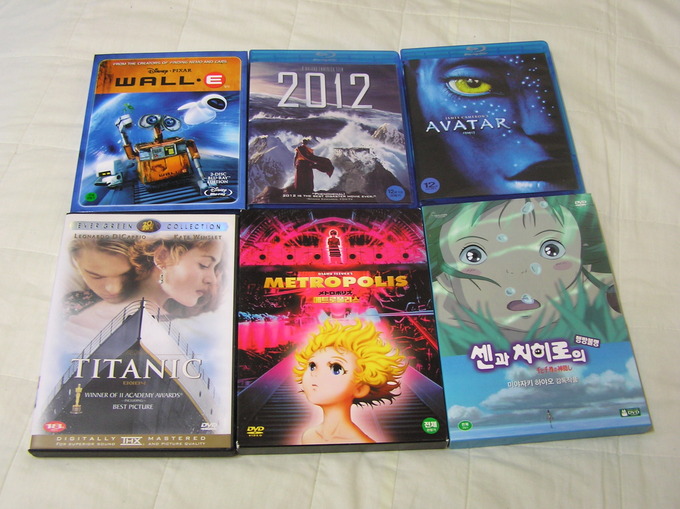'블루레이 3D플레이어(BD-C6900)' 인 본 제품을 제대로 체험하기 위해서는 '블루레이3D' 콘텐츠를 구동해야 하는데, 아쉽게도 현재로서는 제공받은 '몬스터 VS. 에일리언' 밖에는 없기 때문에 다른 작품으로 3D입체화면으로 만들어진 영상을 구경할 방법이 없었습니다. 게다가 블루레이 시장이 아직 활성화 되지 않았기 때문에 대부분의 구작은 DVD나 IPTV용 VOD 영상 정도만으로 서비스 되고 있는게 현실입니다. 그래서 어쩔 수 없이 3D LED TV 에서 제공하는 [ 2D ▶ 3D 변환 ] 의 최적화 요소인 블루레이이기 때문에 3D입체화면으로 만들면 괜찮을 것 같은 작품 3개와 DVD 타이틀 3개를 골라 봤습니다. 실사 영화만 감상하면 안될 것 같아, 3DCG애니메이션과 2DCG애니메이션도 선택해 감상해 봤습니다.