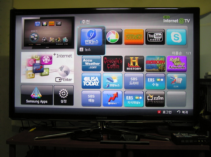'인터넷TV' 서비스는 스마트폰이 어플리케이션이라는 소프트웨어를 통해 핸드폰에서 한단계 진화한 것처럼 TV나 전용 플레이어 역시 어플리케이션을 통해 기존에 가지고 있던 기능에 다양한 소프트웨어를 설치함으로서 멀티미디어 기기 뿐만 아니라 PC 못지 않은 다양한 유틸리티를 활용할 수 있는 스마트TV로서 한단계 진화했습니다. 삼성의 경우 스마트폰을 제조 및 판매를 하고 있기 때문에 자사의 스마트폰에서 사용할 어플리케이션을 개발 또는 소프트웨어 개발사나 개발자 등을 통해 모집하고 있습니다. 아이폰이나 안드로이드 기반의 스마트폰용 어플리케이션에 비하면 그 수가 적긴 하지만 삼성의 경우 스마트폰이나 태블릿PC 뿐만 아니라 자사의 다양한 플랫폼으로 어플리케이션을 활용할 가능성이 높기 때문에 앞으로 발전 가능성은 훨씬 높아 보입니다.