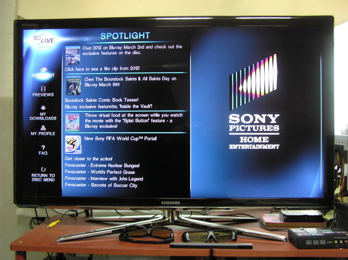 'BD-C6900' 은 기존의 멀티미디어 플레이어와 인터페이스 면에서는 별반 차이가 없었습니다. 블루레이 디스크가 구동해 영화를 재생하는 동안 디스크 메뉴를 꺼내 원하는 설정(음성, 자막 변경)으로 바꾸는 작업을 하거나 원하는 챕터, 시간으로 이동하는 작업은 그동안 DVD 플레이어에서도 제공되었던 것들이기 때문에 익숙하게 다룰 수 있었습니다. 하지만 재미있는 것은 플레이어 자체에서는 특별한 것을 체험해보지 못했지만 블루레이 디스크에서는 재미있는 것들을 체험할 수 있었는데 그게 바로 BD LIVE 입니다. 그런데 BD LIVE 를 체험해보니 ... 블루레이 플레이어에 LAN케이블로 인터넷이 연결되지 않는다면 이것도 불가능하기 때문에 그동안 일반적으로 사용해왔던 플레이어인 DVD와 전용 플레이어와는 큰 차이가 아닌가 싶습니다.